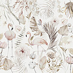 Фотошпалери Акварельний малюнок фламінго та квітів