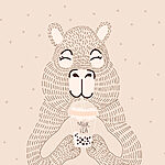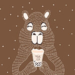 Фотошпалери Карикатура на ведмедя з бульбашковим чаєм