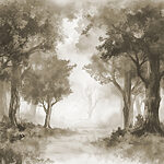 Фотошпалери Туманний ліс з деревами та кущами