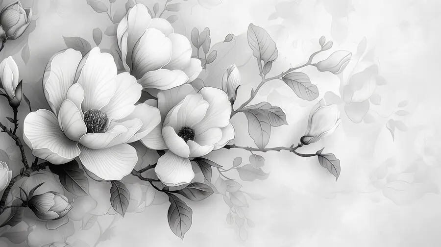 748.34 грн449.00 грнФотошпалери Біла квітка на чорно-білому тлі