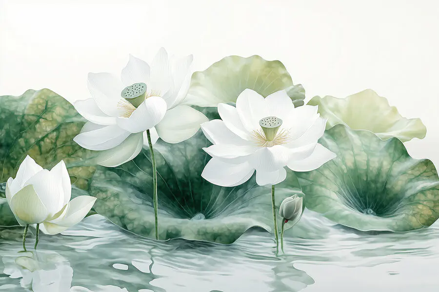 Фотошпалери Група білих квітів і зеленого листя у воді