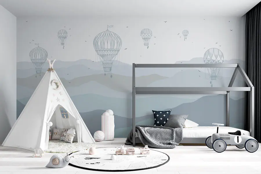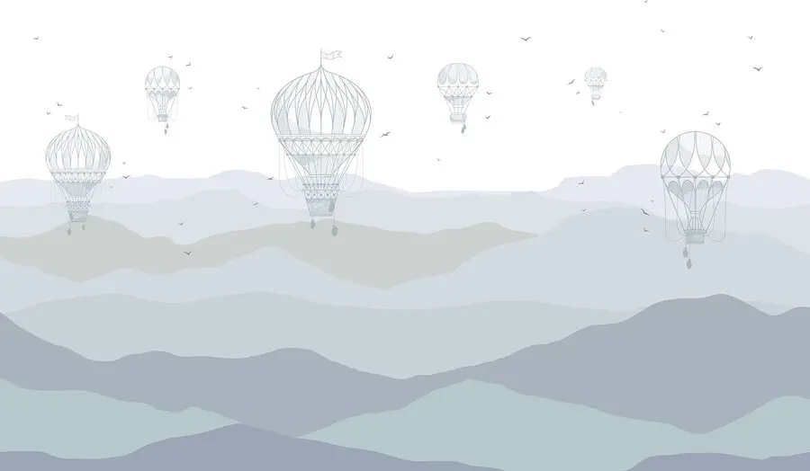 748.34 грн449.00 грнФотошпалери Група повітряних куль у небі над горами