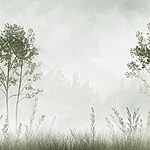 Фотошпалери Туманний пейзаж з деревами і травою