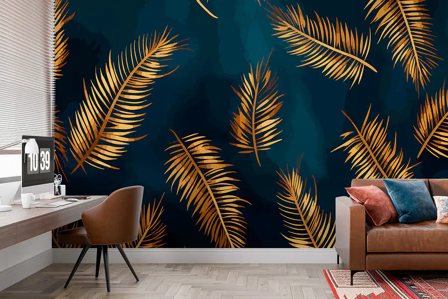 Фотошпалери Бронзове листя на тлі темної елегантності