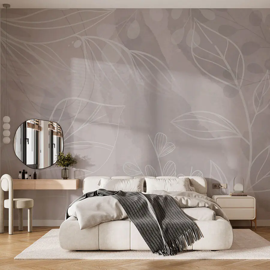 Фотошпалери Біло-сіре тло з листям