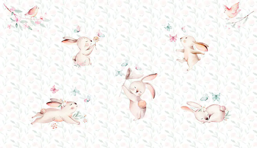 Фотошпалери Візерунок акварельних зайчиків і метеликів