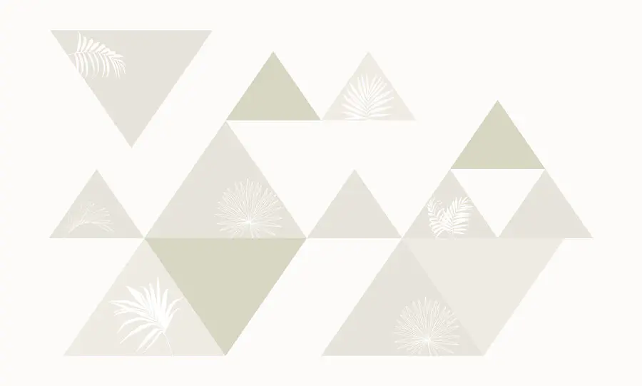 Фотошпалери Білі та сірі трикутники з листям