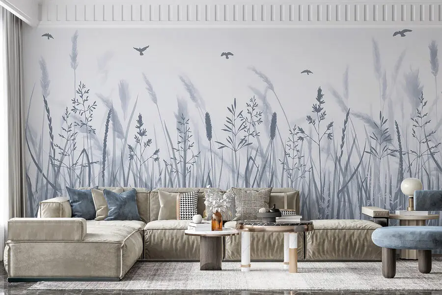 Фотошпалери Поле трави з птахами, що літають
