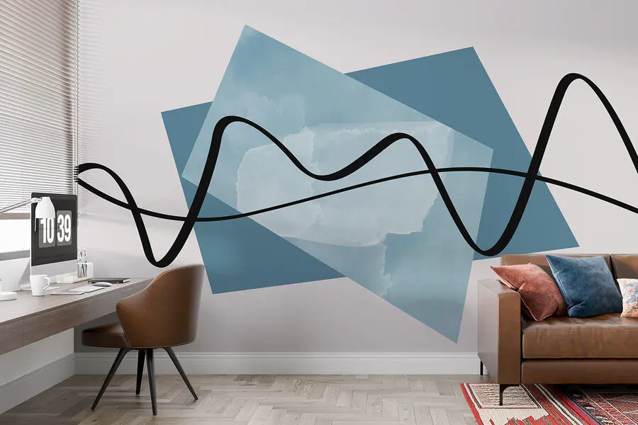 Фотошпалери Чорна лінія на синьому прямокутнику