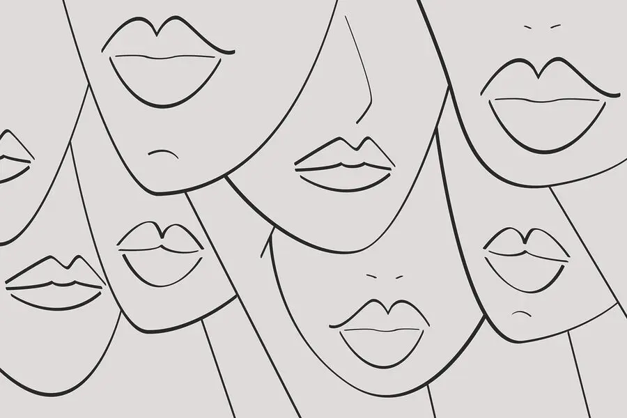 Фотошпалери Група облич з губами та губами, намальованими чорно-білим кольором