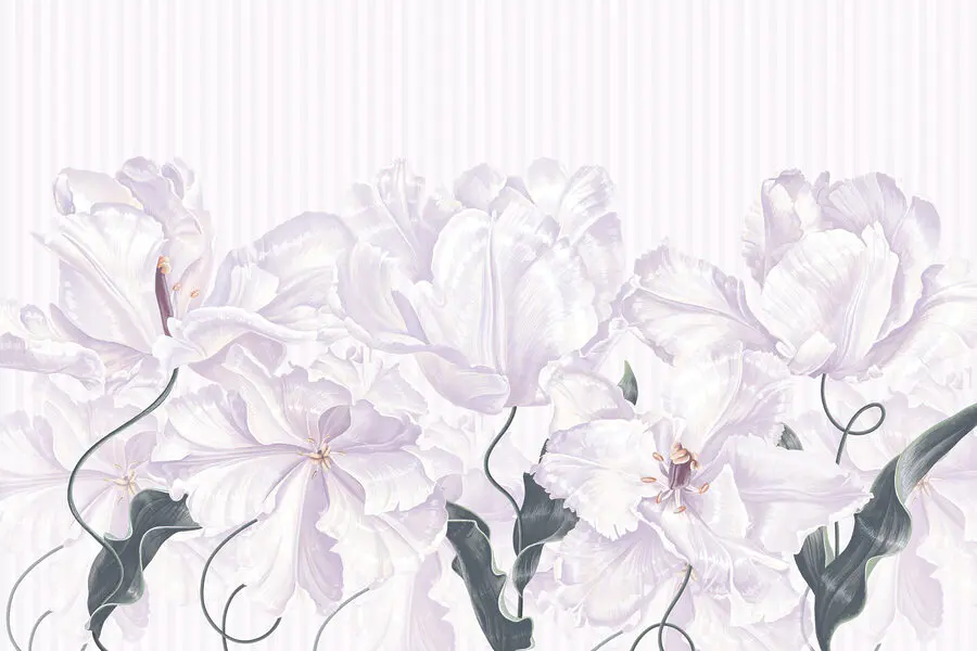 Перетворіть будь-який простір за допомогою фотошпалер "М'які квіти в ніжній гармонії", що навіюють весняні мрії та квіткову романтику. Уявіть, що кожного разу, коли ви заходите в кімнату, ви потрапляєте в м'який, наповнений пелюстками рай. Елегантні білі квіти на тонких смужках створюють безтурботний фон, що ідеально підходить для ранкових чаювань за кавою або вечірнього читання книг. Це наче перенести пишний сад у кімнату - тільки без набридливого пилку! Відчуйте, як ніжні вібрації омивають вас, викликаючи радість і, можливо, невеликий танець у вітальні. Цей мурал не просто прикрашає, він запрошує до затишної атмосфери, ідеальної для всіх тих моментів, які заслуговують на краплину краси.