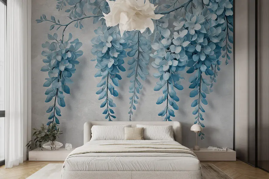 Фотошпалери Гілка з блакитними квітами