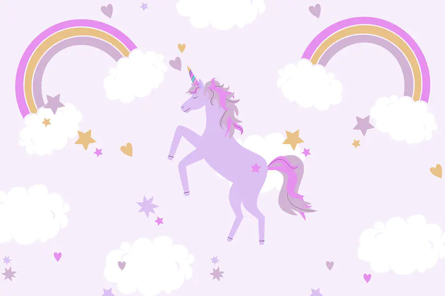 Фотошпалери Фіолетовий єдиноріг із зірками та веселкою