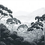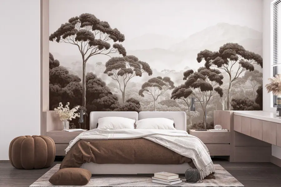 Фотошпалери Ліс з деревами та горами на задньому плані