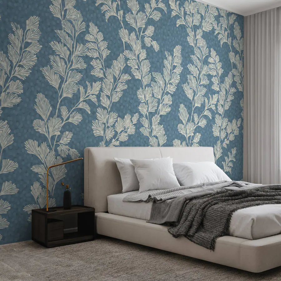 Фотошпалери Візерунок білого листя на синьому тлі