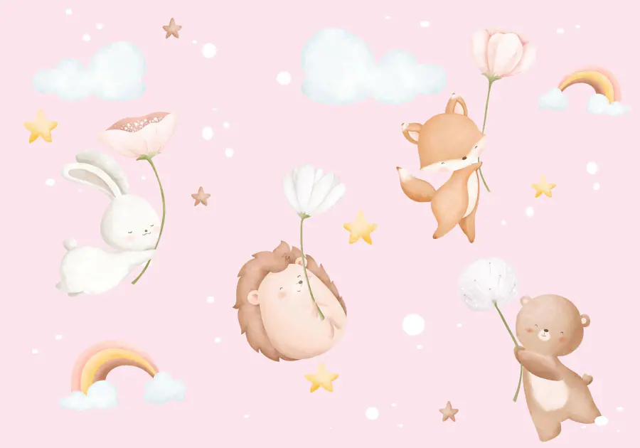 178.78 грн98.33 грнФотошпалери Група рожевих хмаринок і зайчик з повітряними кульками