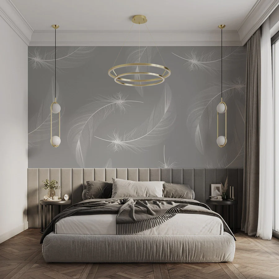 Фотошпалери Біле пір’я на сірому тлі