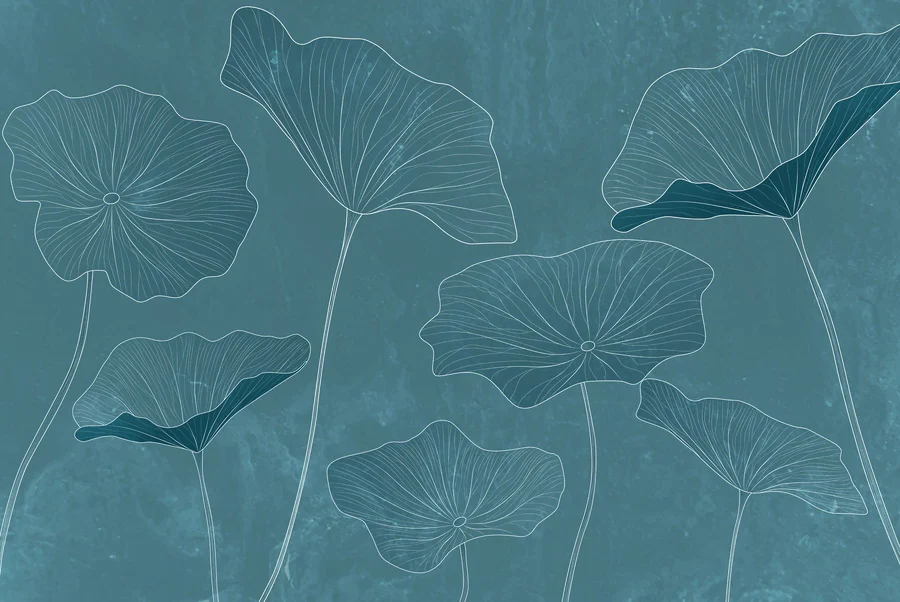 Фотошпалери Малюнок листя на синьому тлі