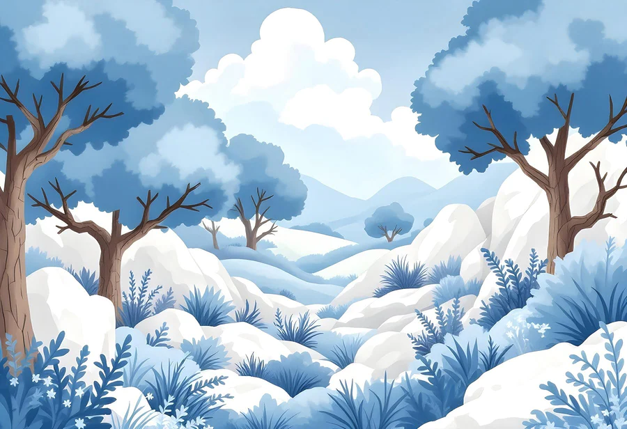 Фотошпалери Засніжений пейзаж з деревами та кущами