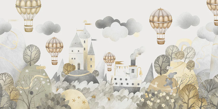 Фотошпалери Акварельний живопис замку та повітряні кулі
