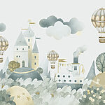 Фотошпалери Акварельний живопис замку та повітряні кулі