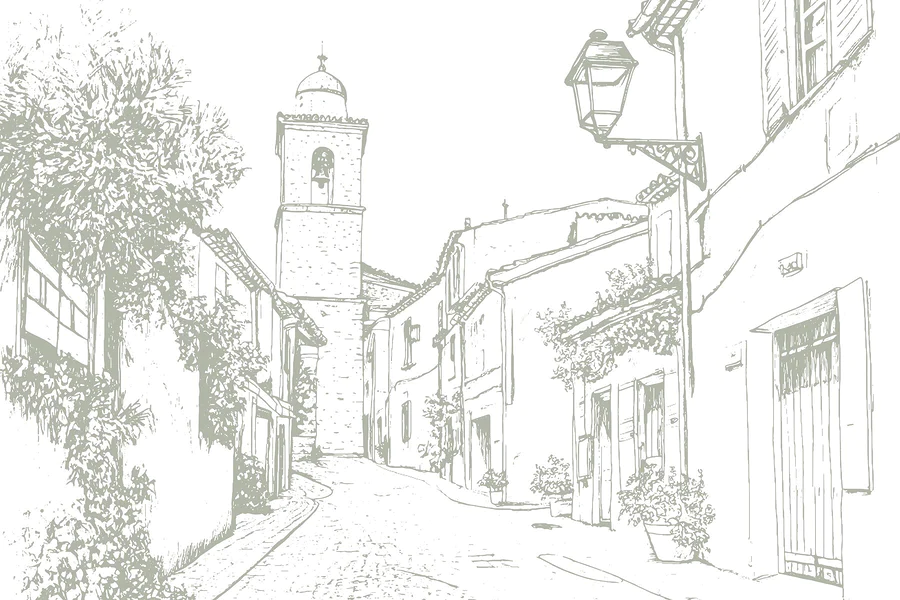 Фотошпалери Малюнок вулиці з будинками та дзвіницею