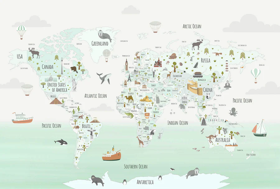 172.50 грн103.50 грнФотошпалери Карта світу з тваринами