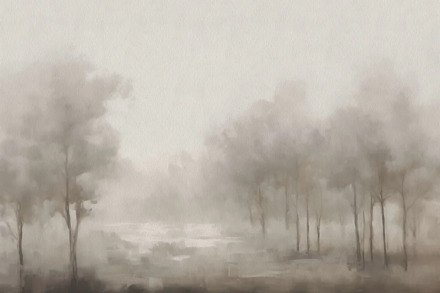 Фотошпалери Туманний пейзаж з деревами