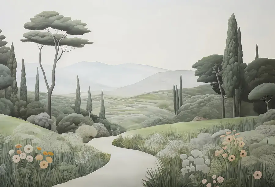 172.50 грн103.50 грнФотошпалери Ґрунтова дорога з білими квітами на ній