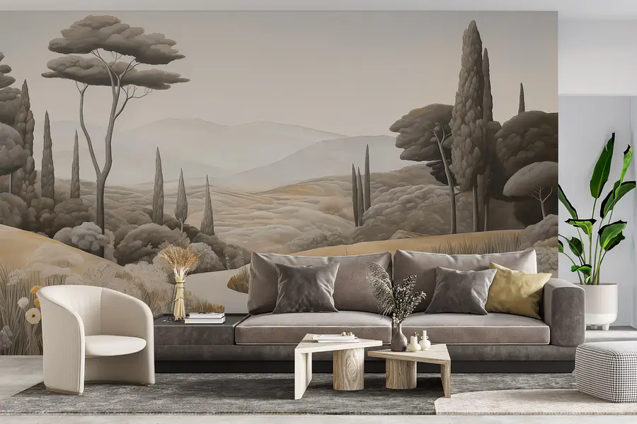748.34 грн449.00 грнФотошпалери Пейзаж гір з деревами та туманом