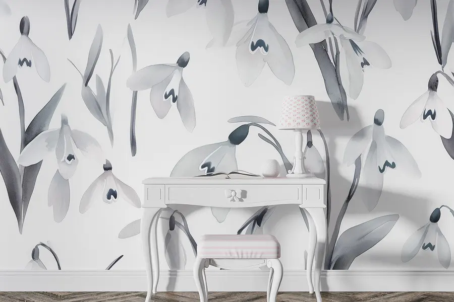 172.50 грн103.50 грнФотошпалери Біла стіна з квітами та листям