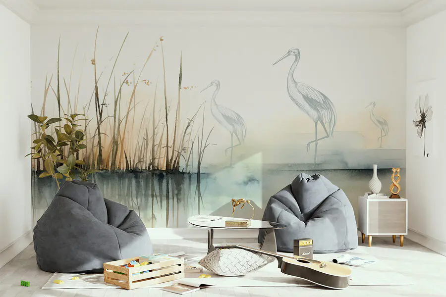 Фотошпалери Малюнок птахів, що стоять на воді