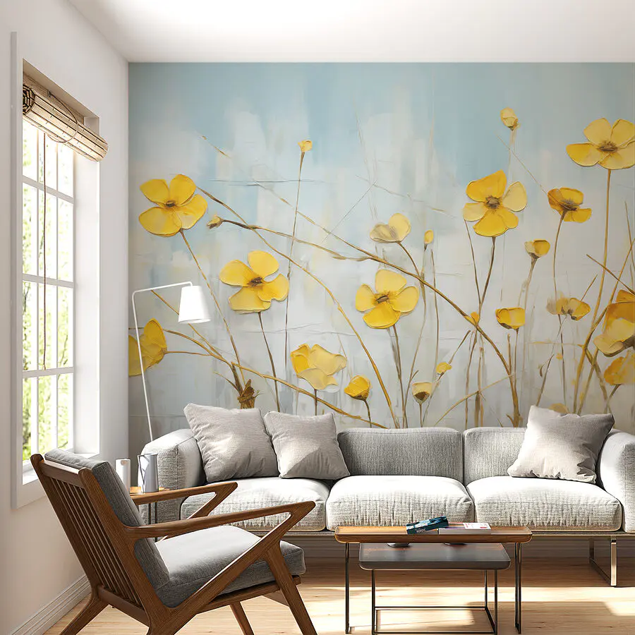 Прикрасьте будь-який простір цим приголомшливим фотошпалером із життєрадісними жовтими квітами, що м'яко гойдаються на безтурботному тлі. Це як принести трохи сонячного світла в приміщення, передати відчуття теплого весняного дня, навіть якщо ззовні ллє як з відра. Уявіть, як ви п'єте ранкову каву, дивлячись на ці квіти, відчуваючи миттєвий приплив радості та енергії. Ідеально підходить для вітальні або затишного куточка для читання, цей фотошпалер запрошує до тепла і щастя. Кожен погляд на нього може викликати посмішку. Хто б міг подумати, що домашній декор може так піднімати настрій? Це ковток свіжого повітря - без жодних садових робіт.