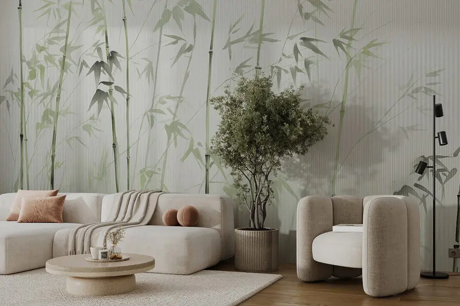 Фотошпалери Стебла бамбука з намальованим листям