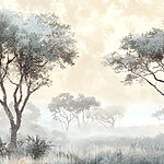 Фотошпалери Туманний пейзаж з деревами та рослинами