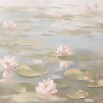 Фотошпалери Вода з подушечками лілій та рожевими квітами