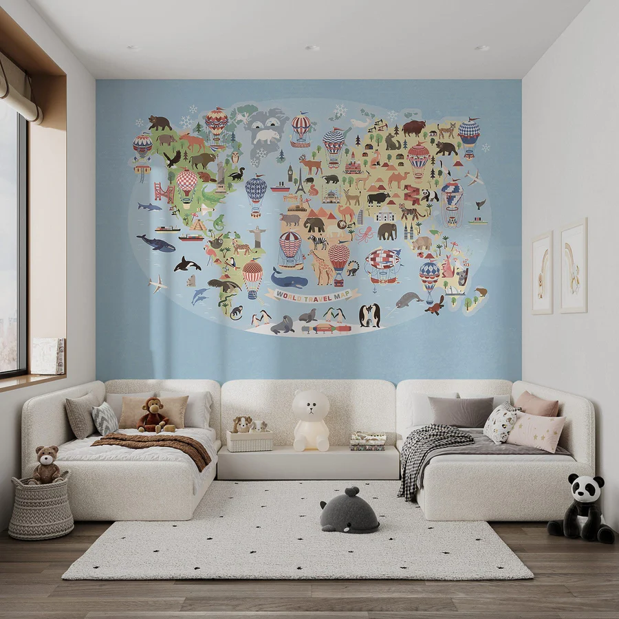 Перетворіть свій простір за допомогою цієї чарівної "Карти світу з тваринами". Це не просто фотошпалери - це чудова подорож, яка розпалює уяву! Уявіть собі сафарі прямо у вашій вітальні, де кожна країна оживає з барвистими тваринами. Від плямистих леопардів в Африці до захоплюючих дух повітряних куль, що ширяють над Європою, - тут знайдеться щось для кожного. Тільки уявіть, як діти вказують на своїх улюблених тварин або мріють про пригоди. Мурал додає грайливого штриху, оживляючи будь-яку стіну та заохочуючи цікавість. Це як початок розмови та казка в одному флаконі! Ідеально підходить для дитячої, ігрової кімнати або навіть затишного куточка для читання, цей витвір запрошує до дослідження та подиву. Принесіть додому поєднання атмосфери мандрівки та вигадливості - це може навіть надихнути вас на наступну велику подорож, просто кажучи!