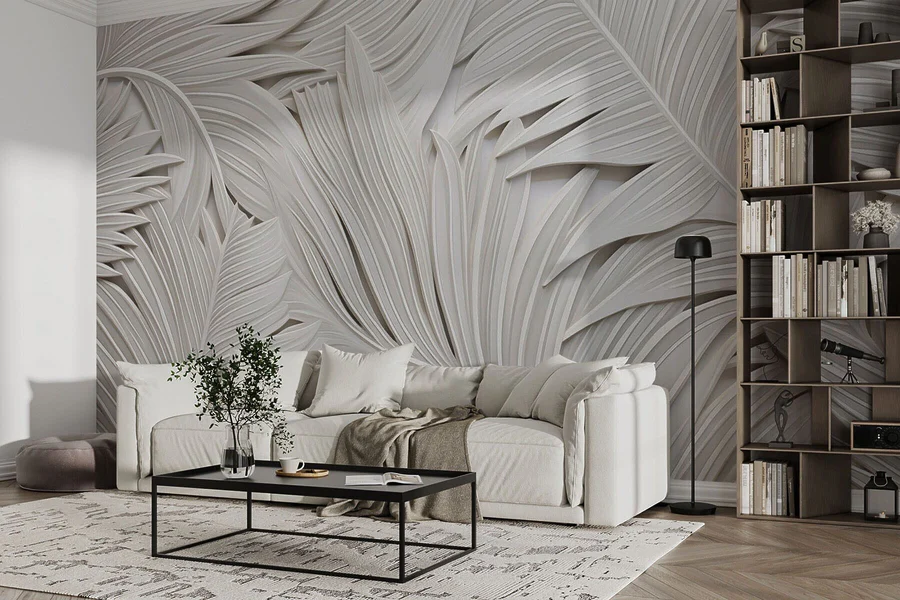 172.50 грн103.50 грнФотошпалери Біле листя на сірому тлі
