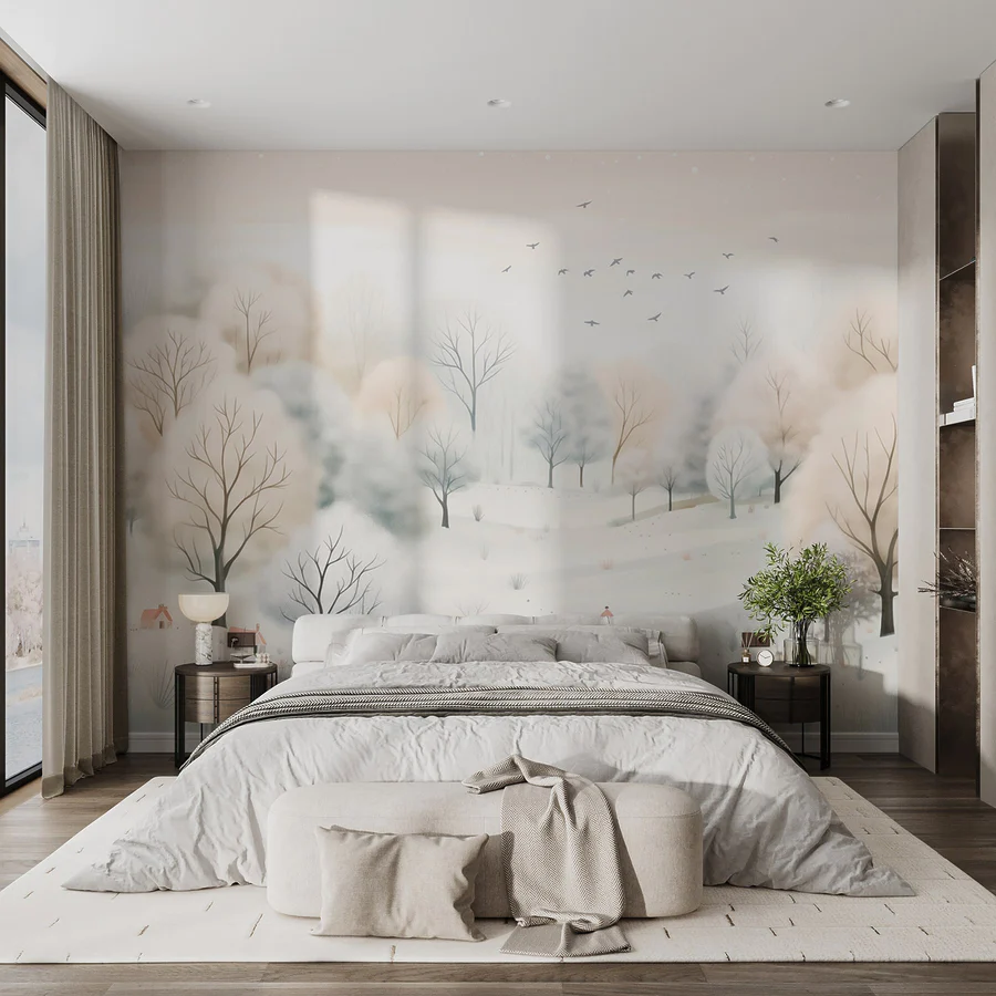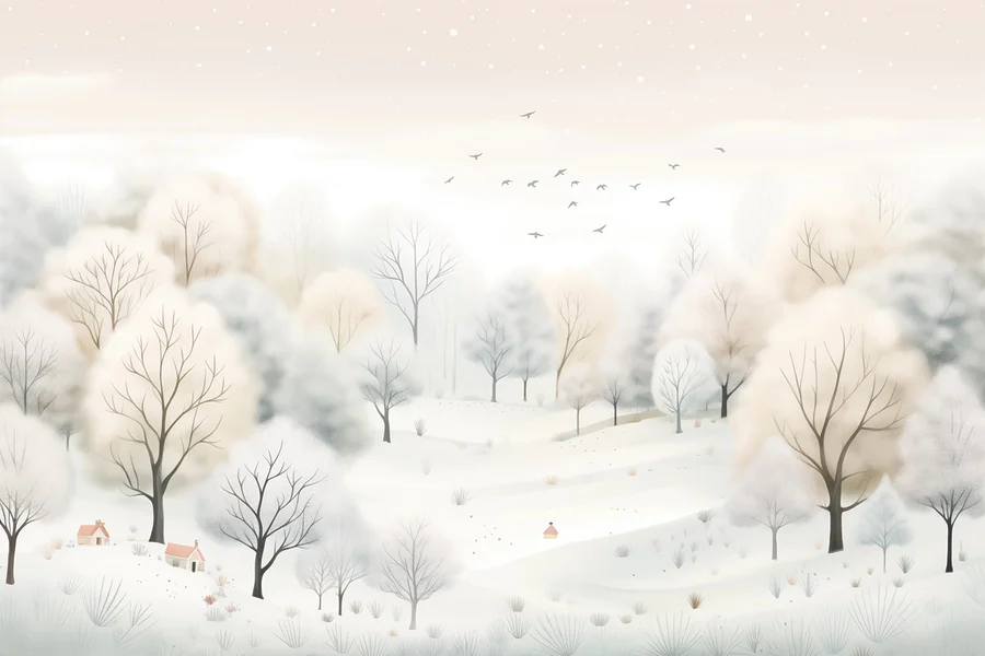 Перетворіть будь-який простір на затишну зимову країну чудес за допомогою цього фотошпалера "Сніговий пейзаж з деревами та птахами". Уявіть, як ви заходите в кімнату і відчуваєте, що потрапили в безтурботний ліс, де м'який сніг вкриває землю, а ніжні гілки дерев м'яко погойдуються. Ніжні кольори та мрійлива атмосфера ідеально підходять для прохолодних вечорів, коли хочеться зігрітися теплими напоями та загорнутися у пухнасту ковдру. Уявіть собі: потягуєте какао, а за вікном пурхають птахи, як на муралі. Це не просто декор, це атмосфера - маленький шматочок спокою, який шепоче: "Розслабся, ти вдома".
