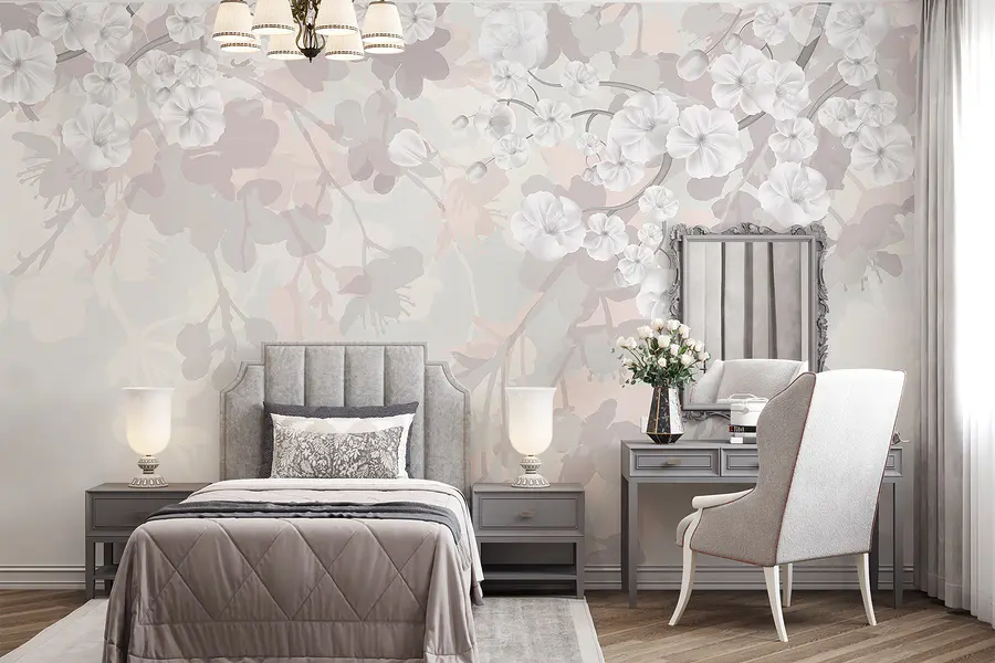 Фотошпалери Білі квіти на білому тлі