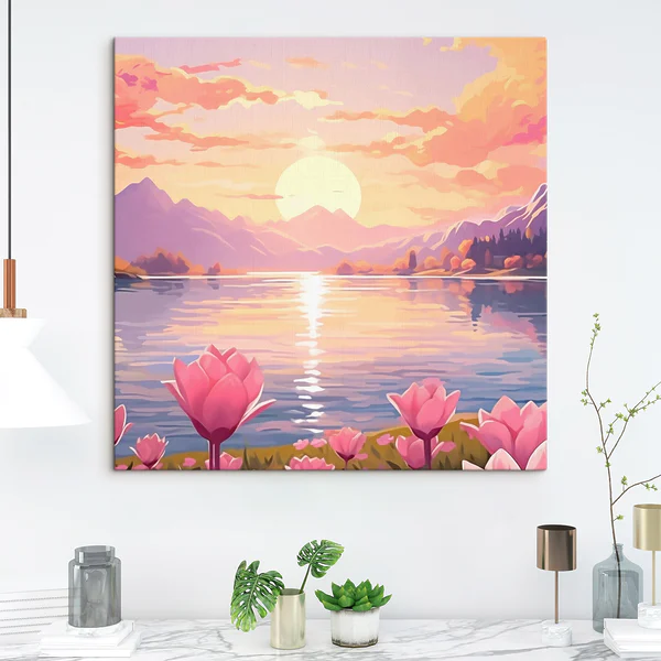 498.40 грн356.00 грнКартина Рожеві квіти біля озера