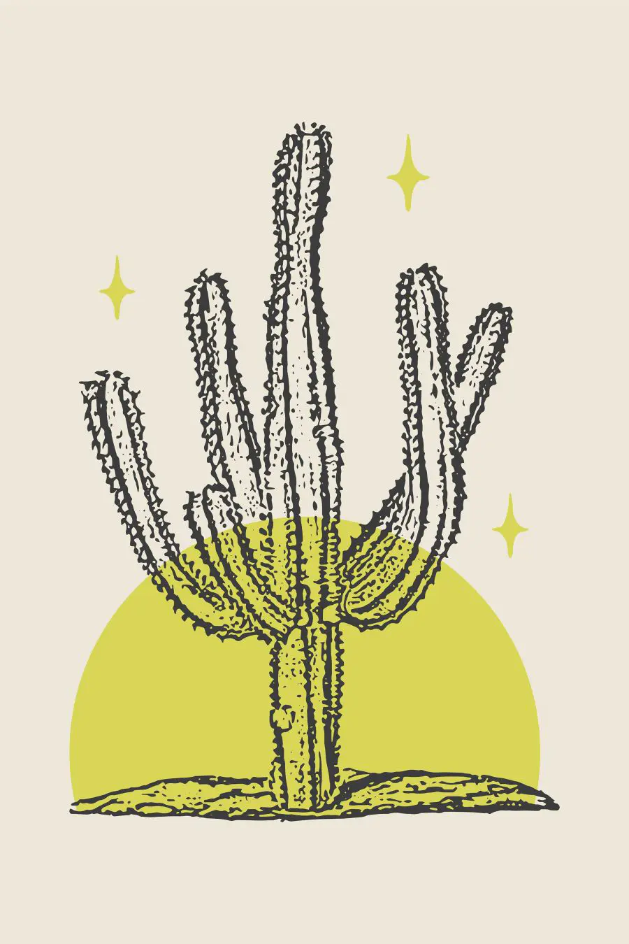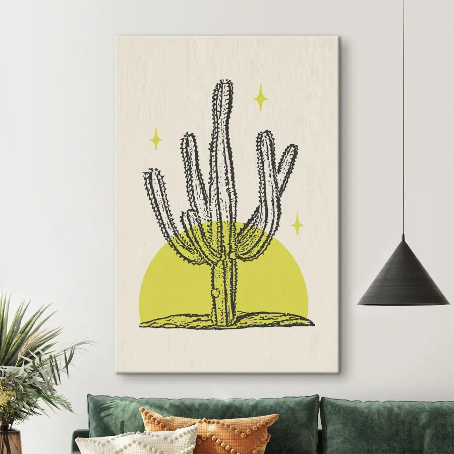 Картина Кактус з жовтим колом і зірками