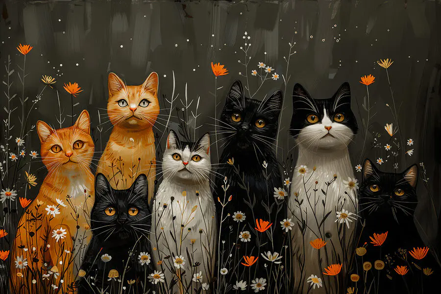 Картина Група котів на квітковому полі