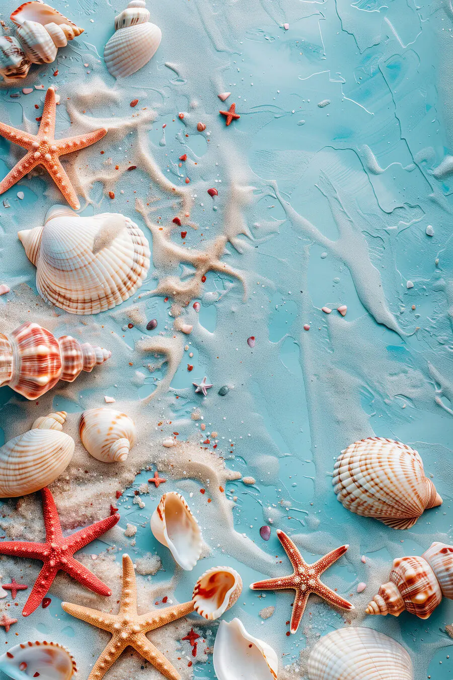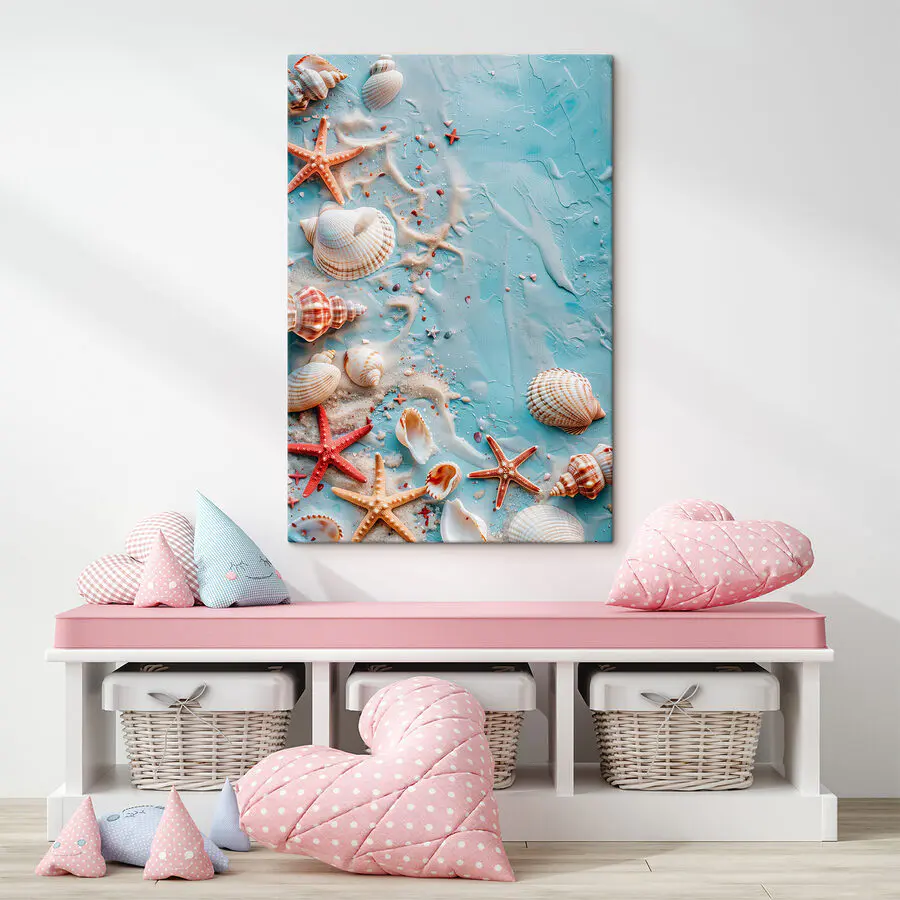 Картина Група черепашок і морських зірок на блакитній поверхні