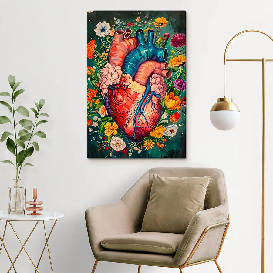 Уявіть собі: серце, що вибухає кольорами, обсипане яскравими квітами - кожна пелюстка майже танцює на полотні. "Барвисте серце з квітами" - це не просто мистецтво, це вибух життя та емоцій прямо на вашій стіні. Уявіть, що ви повертаєтесь додому після важкого дня, а на порозі вас зустрічає ця краса - життєрадісність миттєво занурює вас в атмосферу. Чудове поєднання анатомії справжнього серця, обплутаного польовими квітами, - це веселий початок розмови. Ідеально підходить для того, щоб вдихнути життя в будь-яку кімнату. Чудово підходить для затишної вітальні або як душа дзен-простору, вона химерна, але глибоко прекрасна у своєму недосконалому вигляді. Ви можете нескінченно вдивлятися в нього, помічаючи нові дрібні деталі - прихований цвіт або несподіваний відтінок. І це неодмінно стане приводом для космічної розмови: "Це... серце?" Ага, і хіба вона не красуня?
