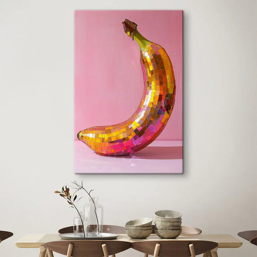 Картина Кольоровий дзеркальний банан на рожевому тлі