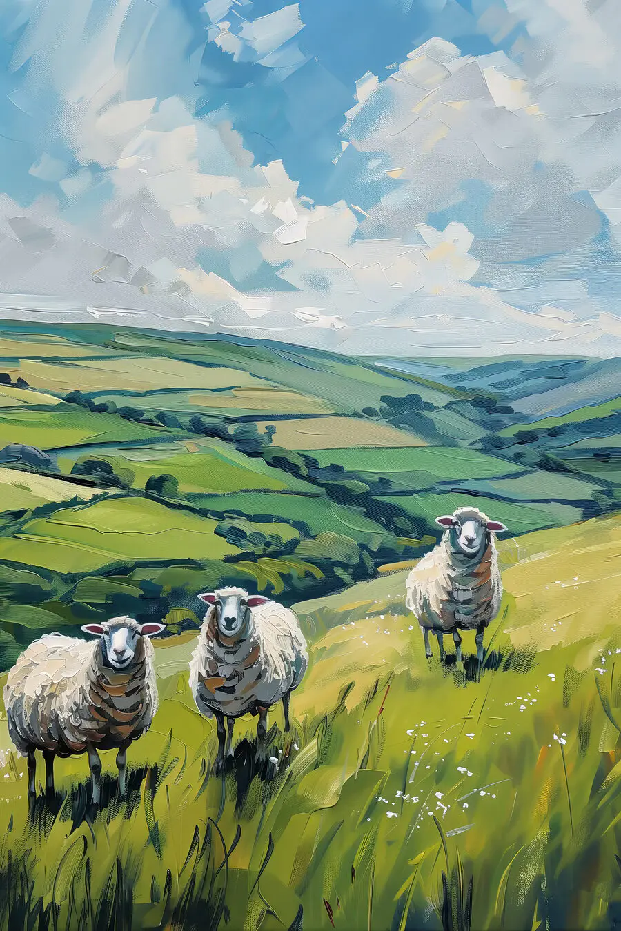 Картина Група овець на трав’янистому пагорбі