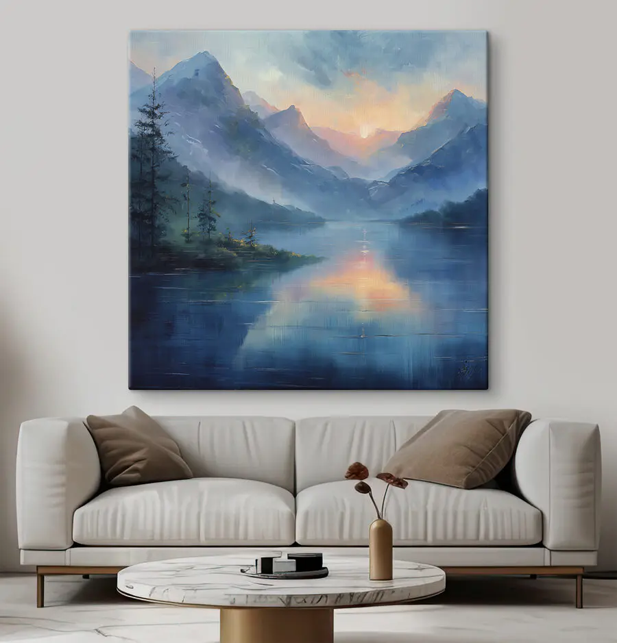 Картина Картина озера з горами та деревами
