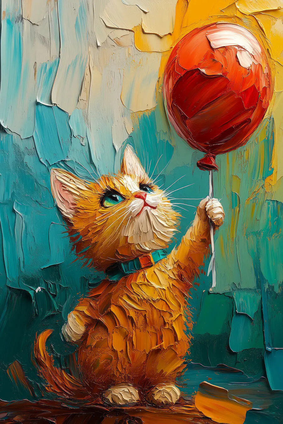 Картина Картина із зображенням кота, який тримає повітряну кульку