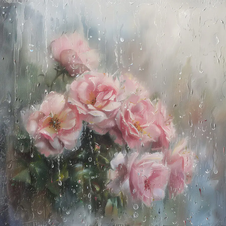 Imagine a rainy day where everything feels dreamy and soft—like a watercolor kiss for your walls. This canvas print, "Close up of flowers," captures that moment perfectly. The roses seem to blush under a delicate mist, inviting a whisper of calm into any room. It's like nature's little wink, reminding you to pause and enjoy a slower pace. Place this in the living room or bedroom, and watch as it becomes your go-to spot for daydreaming. A beautiful way to let a bit of nature indoors, without any pollen.
